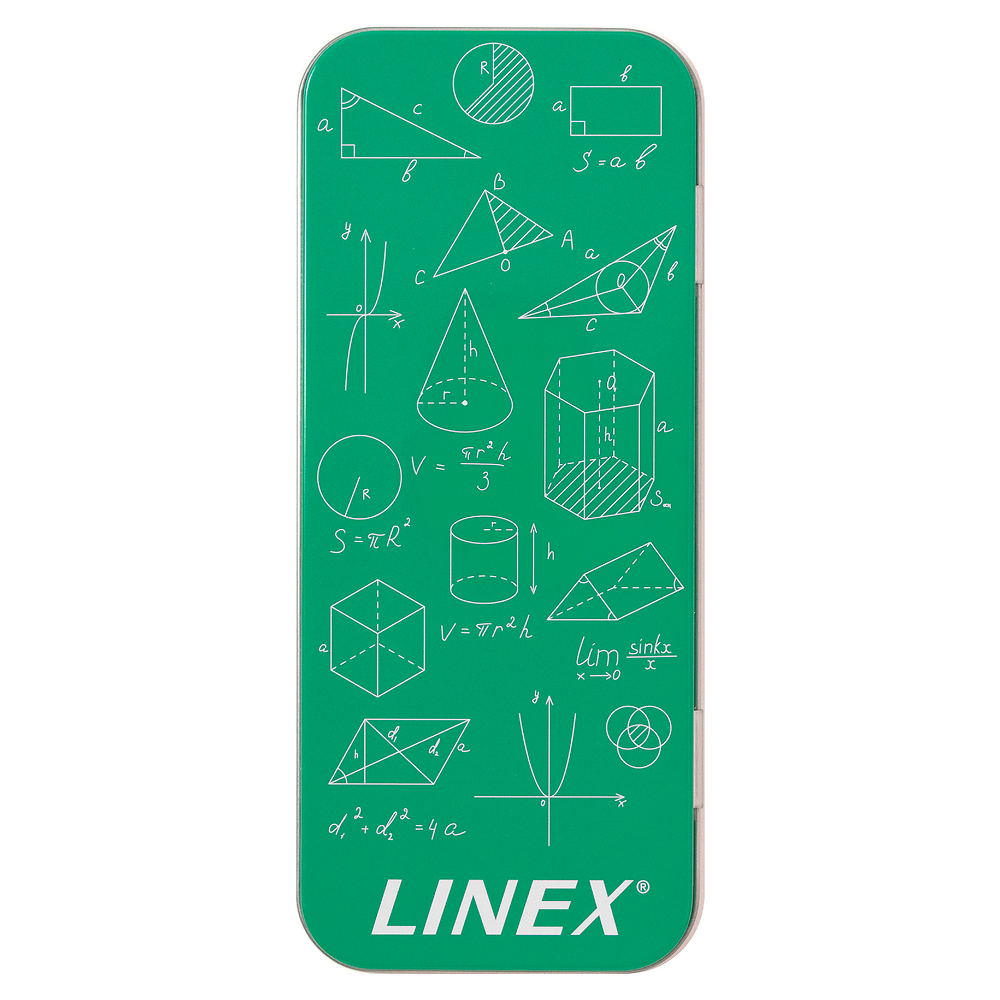 Our 10 piece geometry tin is the perfect companion for school maths lessons. The case contains 2 self centering compasses, a pencil, replacement lead refills, a 15cm ruler, protractor, 2 set squares, eraser and sharpener. The compact case is ideal for transporting the set between home and school.