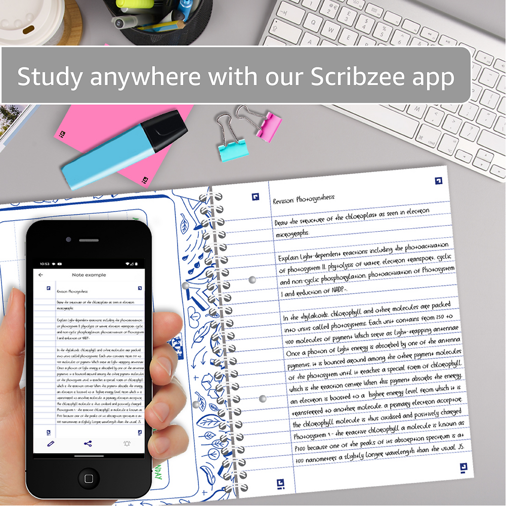 Scribzee Enabled: With the Oxford Scribzee app for your Android or iOS device you can scan, save and share your notes.