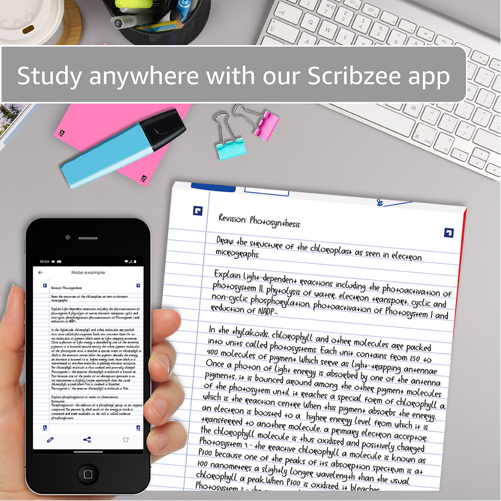 Scribzee Enabled: With the Oxford Scribzee app for your Android or iOS device you can scan, save and share your notes.