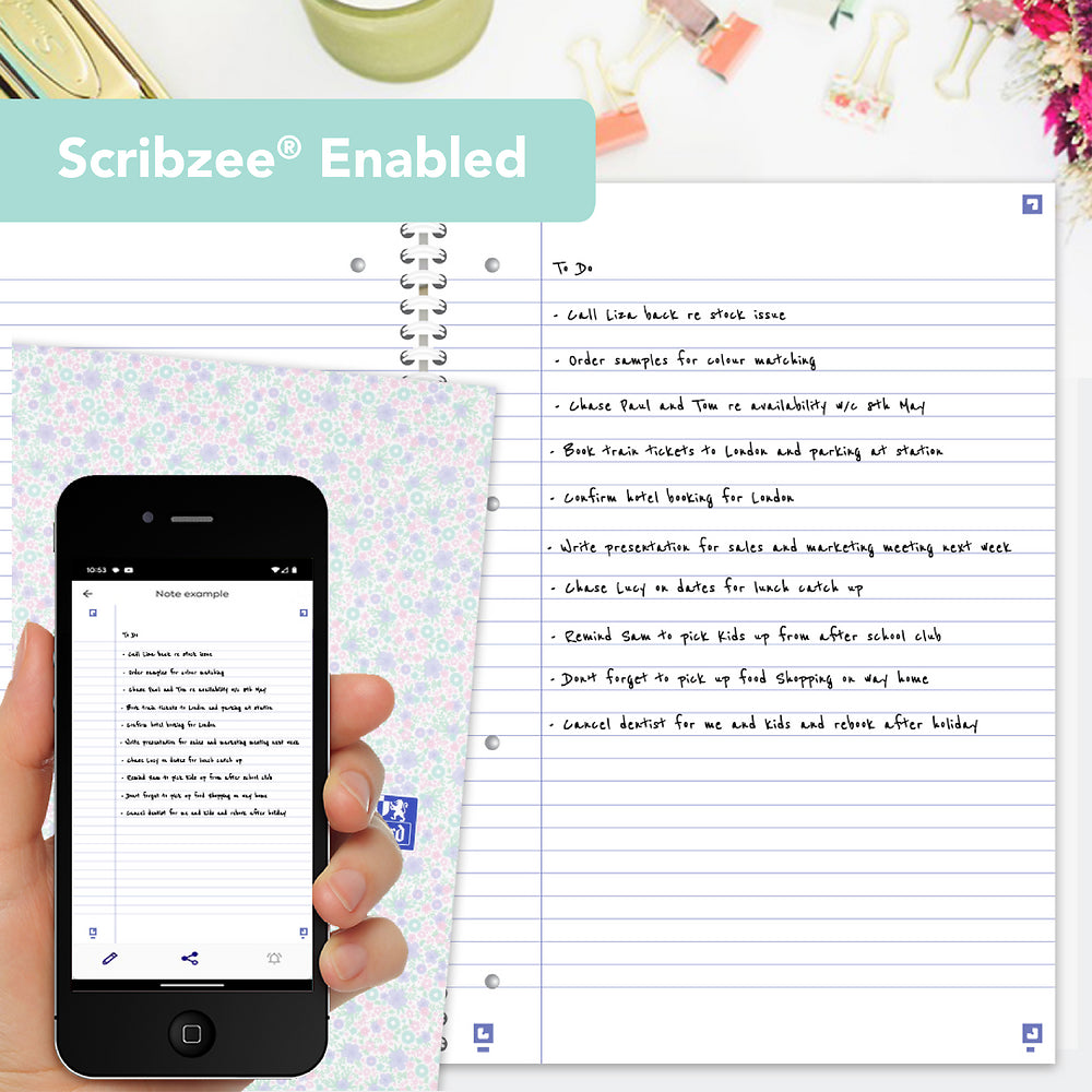 • Scribzee Enabled: With the Oxford Scribzee app for your Android or iOS device you can scan, save and share your notes