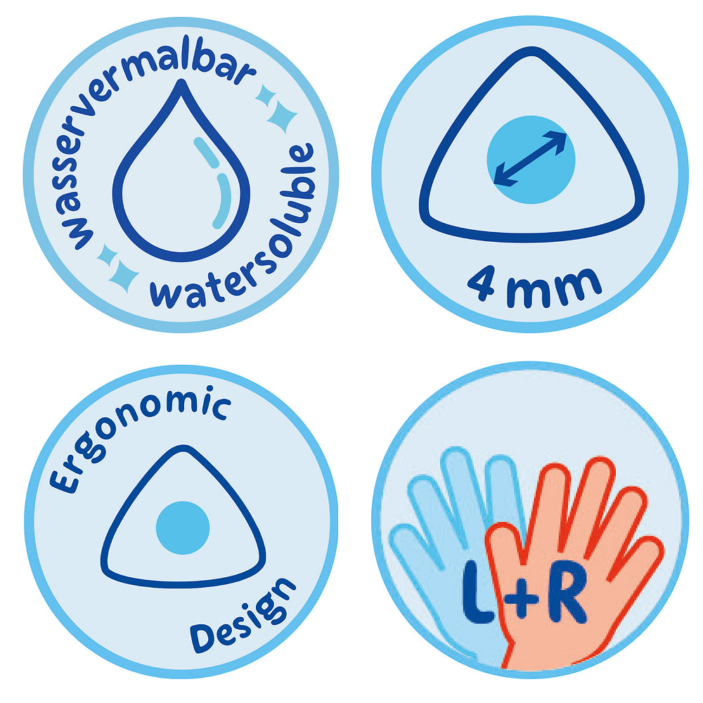 These Pelikan Griffix colouring pencils feature an ergonomic grip zone which encourages a comfortable three finger hold, teaching control and precision. Griffix colouring pencils are also water soluble when applied to paper for extra creativity. Available in 12 assorted vibrant colours, Griffix colouring pencils contain a high quality 4mm lead for smooth application.