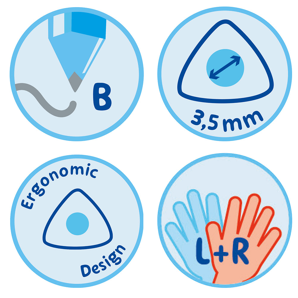 These Pelikan Griffix B pencils make learning to draw and write easy. A great tool for children's first writing exercises before they start writing with ink, these Griffix pencils are triangular shaped with an ergonomic grip zone for comfort. The grip zone is suitable for both left and righthanders alike, encouraging a relaxed tripod grasp. The 3.5 mm thick quality lead guarantees a good graphite application even with little pressure. Hardness grade B is slightly softer and darker than HB and particularly suitable for learning to write. Pack of 12 pencils.